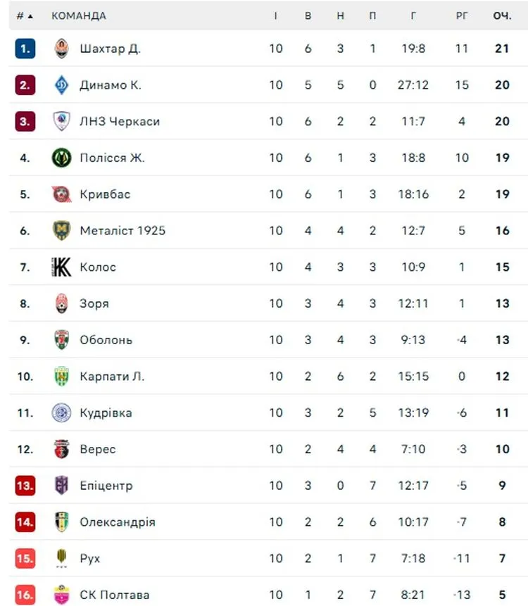 Динамо разгромило Кривбасс с юбилейным голом Ярмоленко: турнирная таблица УПЛ после 10-го тура