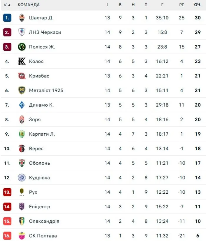 СК Полтава находится на последней, 16-й позиции в турнирной таблице с шестью баллами. У подопечных Павла Матвийченко есть только одна задача – это зацепиться хотя бы за плей-офф переходных матчей за право остаться в элитном дивизионе Украины.